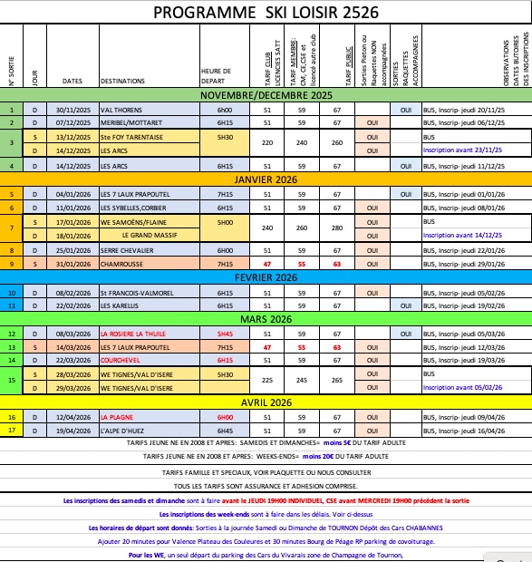 Le SATT vous propose une sortie skis et raquettes à Val Thorens le dimanche 30 novembre 2025. Les enfants accompagnés …+