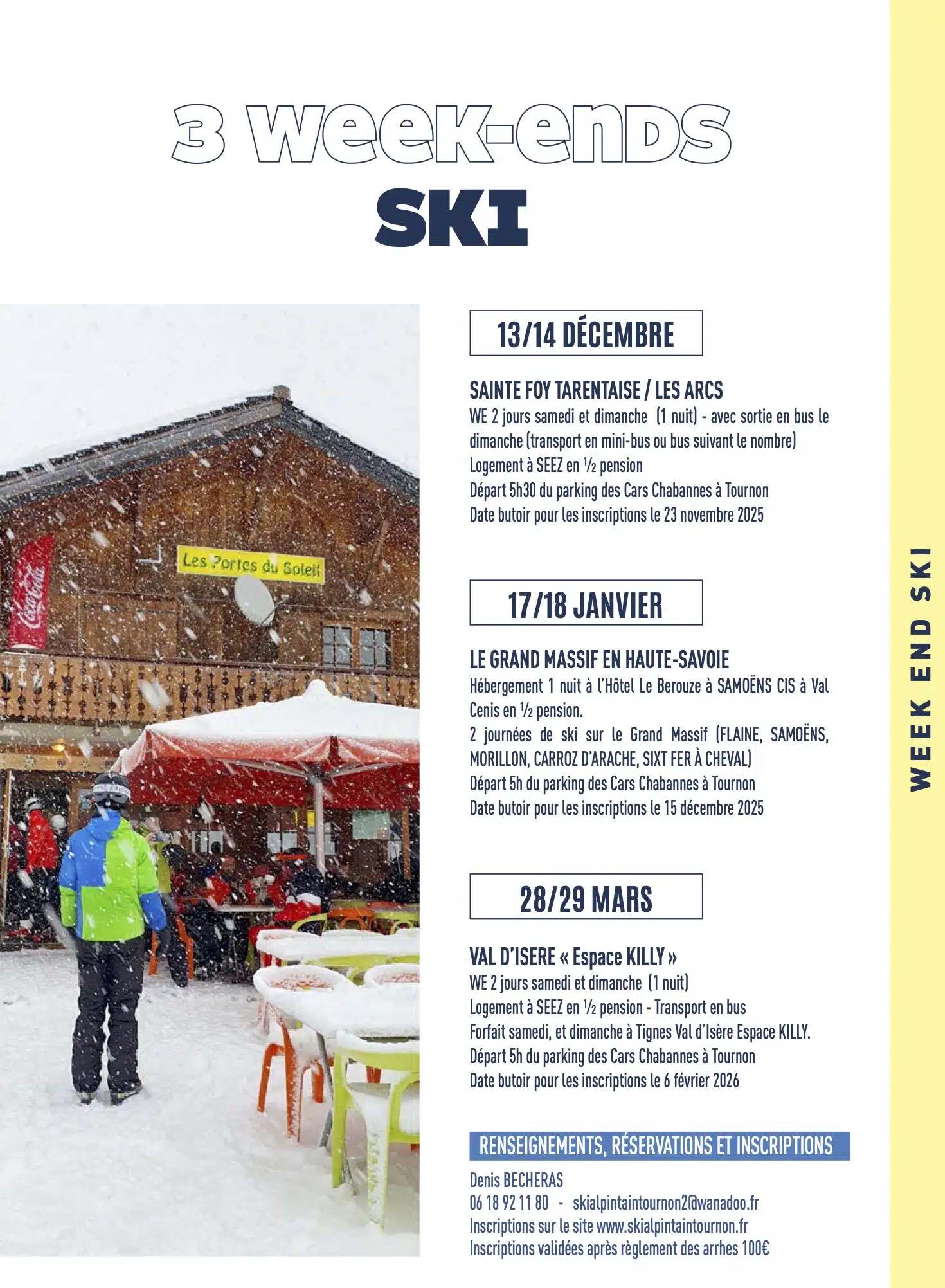 Week-end Ski Loisirs Bourse aux skis Stage d’hiver Activités Plein Air Week-end Ski Loisirs Le jumelage France Allemagne Tombola Agenda des sorties Actualités du SATTSortie Raquettes Val-Thorens7 octobre 2025Le SATT vous propose une sortie skis et raquettes à Val Thorens le dimanche 30 novembre 2025. Les enfants accompagnés …+WEEK_END en MARS 20267 octobre 2025En décembre et janvier, nous avons fait 2 superbes WE de ski avec un temps magnifique et belle neige. Le …+WEEK-END Janvier 20267 octobre 20252 -ème WEEK-END: Janvier 2026 LE GRAND MASSIF EN HAUTE SAVOIE Samedi 17 et dimanche 18 Janvier 2026 Date …+Consulter toute l'actu